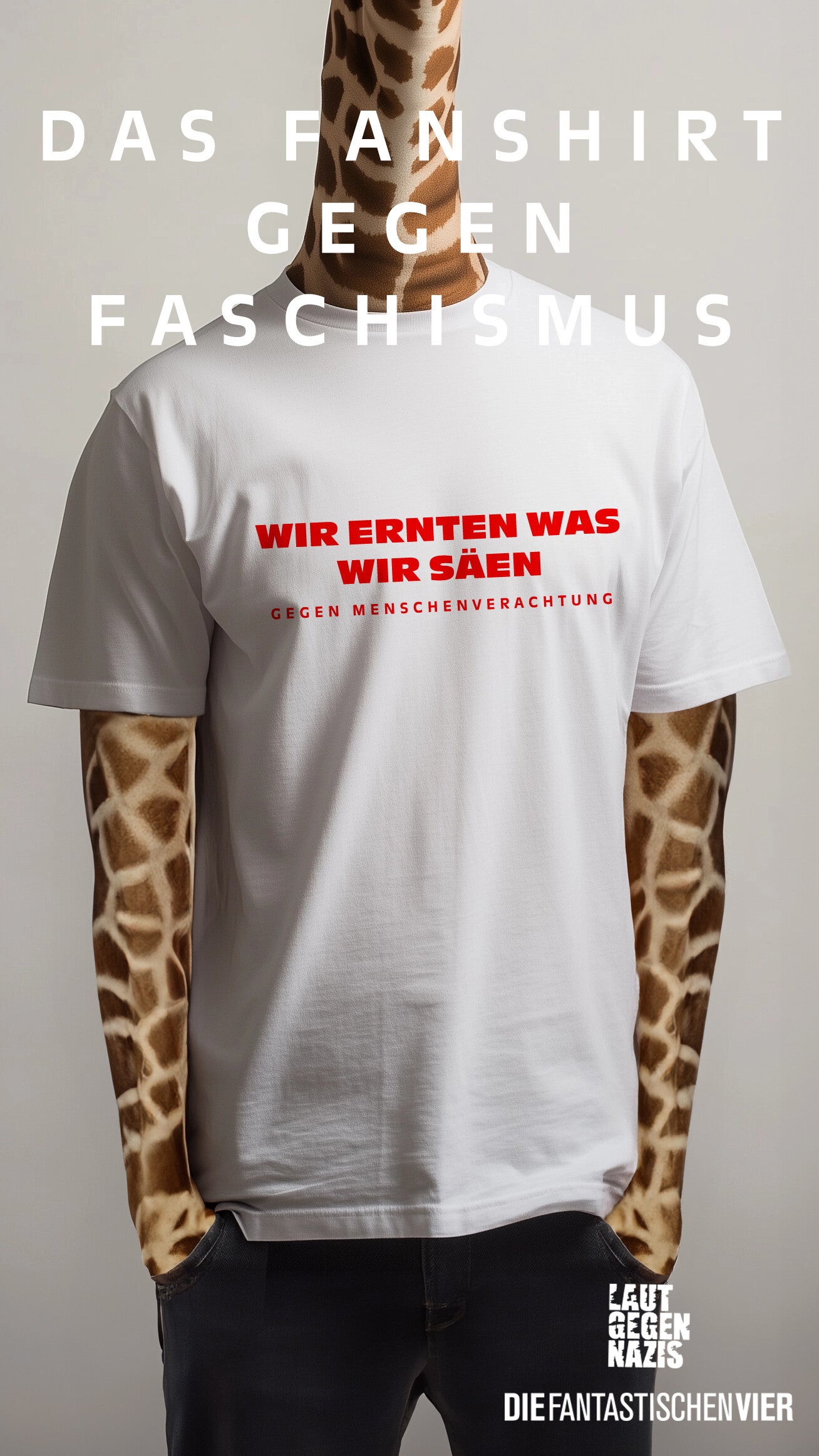 Wir können den derzeitigen Trend nur stoppen, wenn wir Menschenliebe säen und die Demokratie, unsere Freiheit und Selbstbestimmung in den Vordergrund stellen. Unsere größten Untertstützer:Innen -Die Fantastischen Vier- und wir haben ein gemeinsames Textil produziert. Die Erlöse hieraus, fließen in die Projekte von -Laut gegen Nazis- Vielen Dank an alle